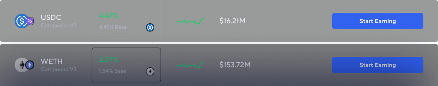 Supply assets and earn passive income on audited protocols with just a couple of clicks.